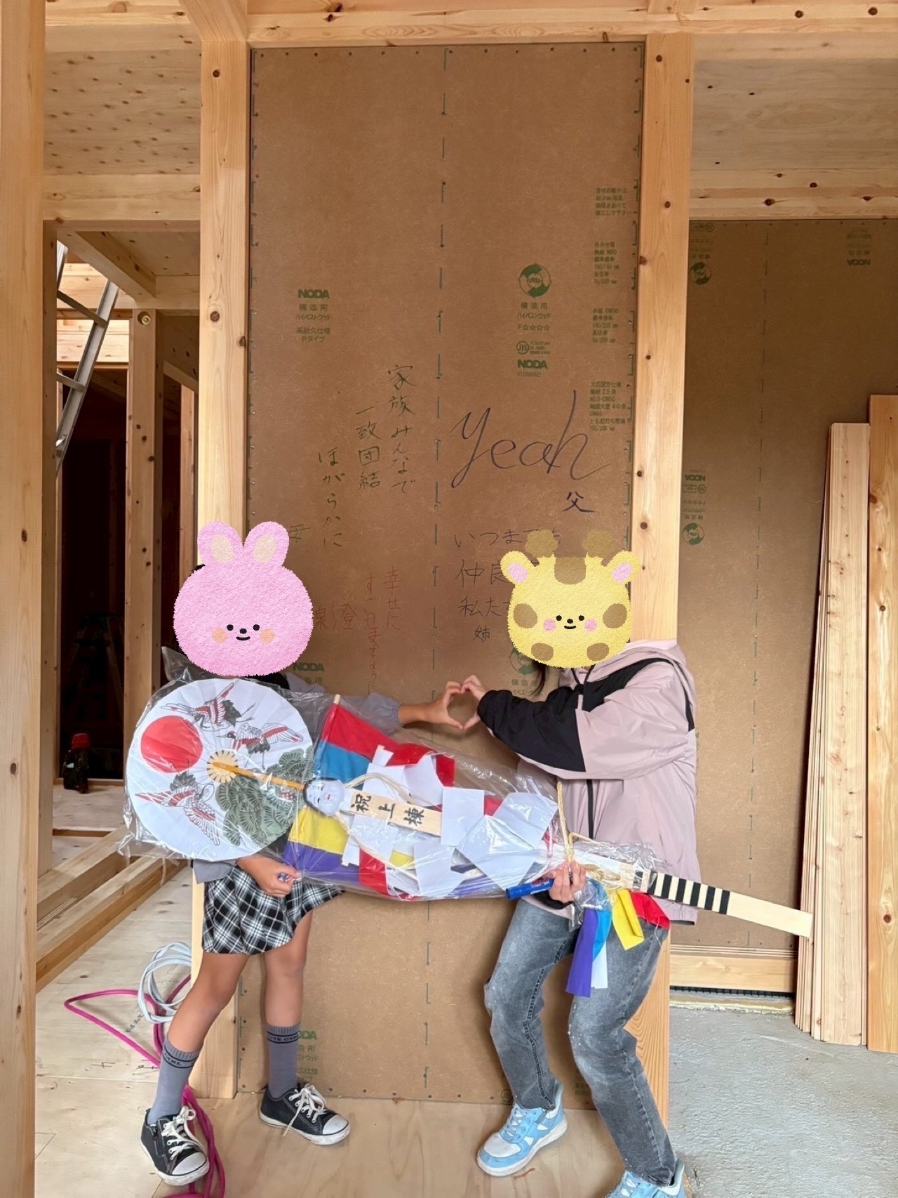 建設中の壁に家とともに過ごす明るい未来を思い浮かべながら各々メッセージを記入しました!