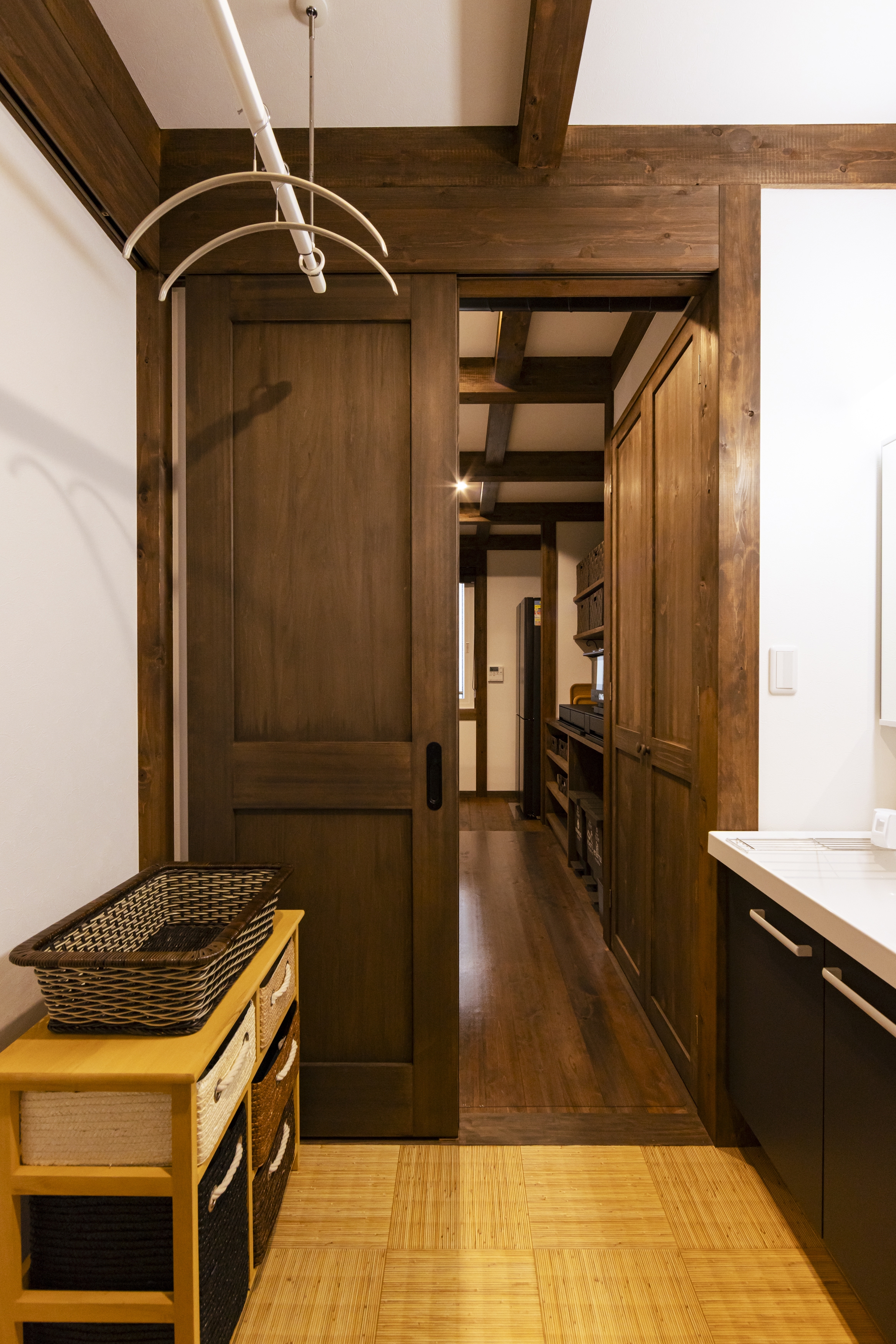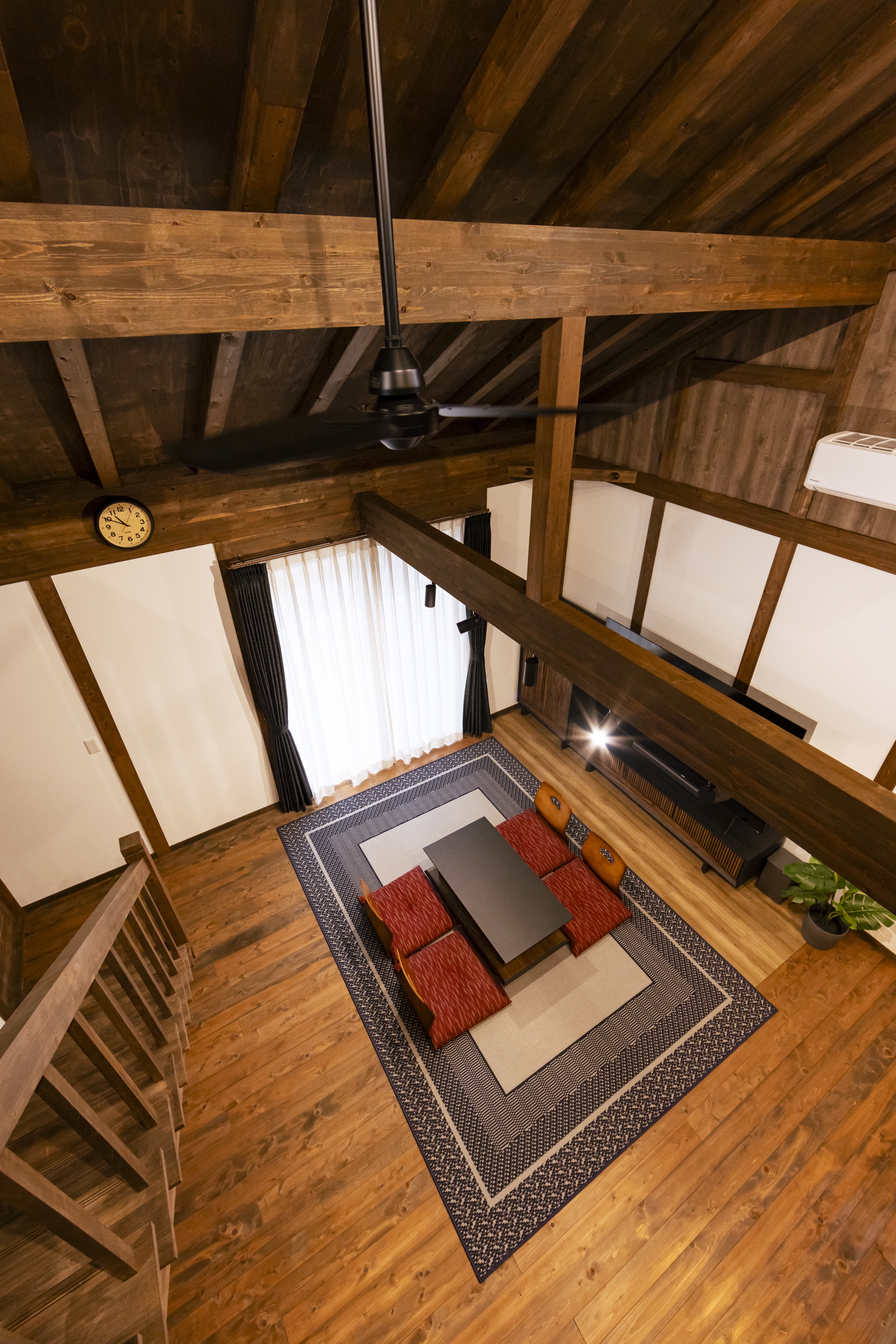 T様邸では、そんな木の風合いを活かした空間に和風の家具を取り入れ、落ち着きのある統一感を演出。伝統的な日本の住まいの趣を感じながらも、現代の暮らしに寄り添った、どこか懐かしく心地よい空間が広がっています。